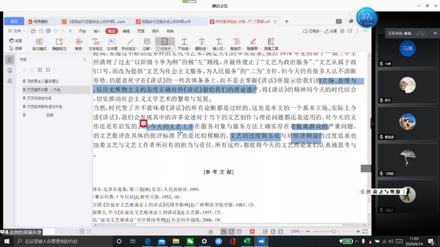 解读:文艺学的同学首先给我们带来了讲话文本的精读,在精读过程中,我们渐渐明晰了《讲话》的主旨。