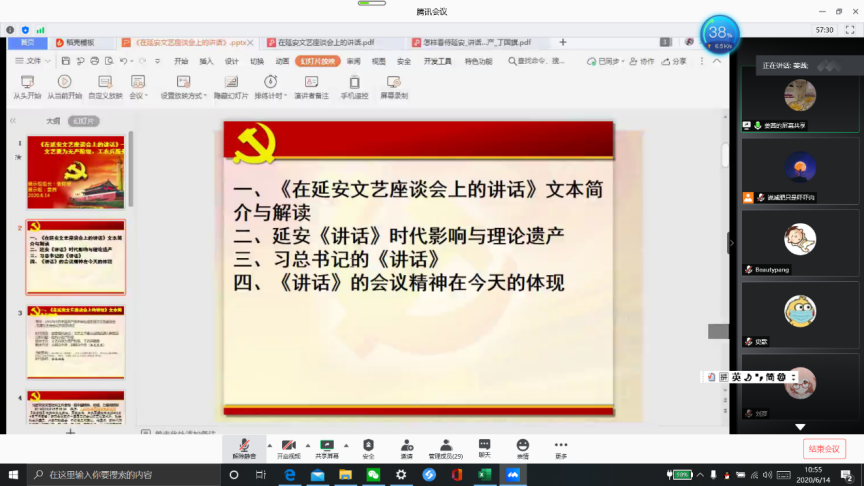 2020年6月14日,一场“别开生面”、“带有浓浓学术气息”的主题党日活动在云端上线。这次主题党日活动,立足于利来国际研究生四个专业从不同角度探讨“党建与专业”深度融合,不仅对自己所学专业知识的现实意义有了更深的理解,同时对传承红色基因、弘扬文化自信有了更深的认同。