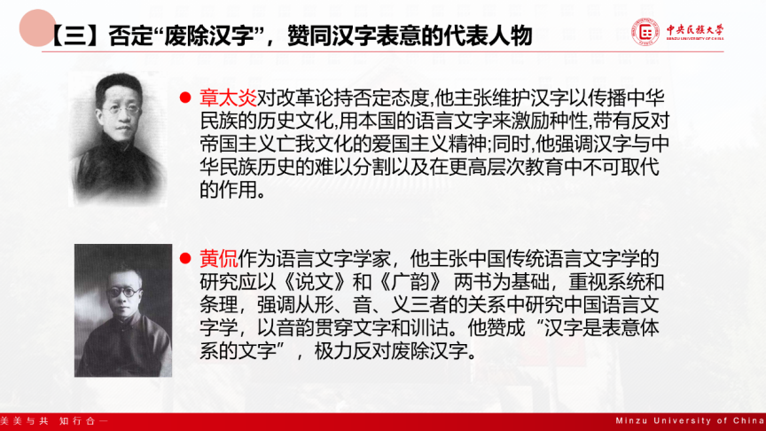 文字学的同学认为,不论是传统语言文字学的“章黄学派”还是新中国成立以来的汉字简化运动,都是汉字坚定的拥护者,汉字是中华文化不可缺少的重要部分。