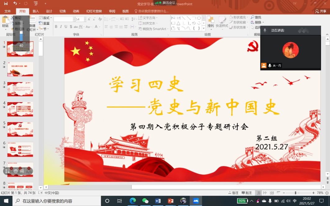“学四史,记使命,担重任”。第二小组成员以阅读《论中国共产党历史》,梳理重要会议等方式进行党史与新中国史的学习,深入了解中国共产党筚路蓝缕、艰苦奋斗的历程,学习党史与国史关乎精神传承、使命接力,不忘本来才能开创未来。