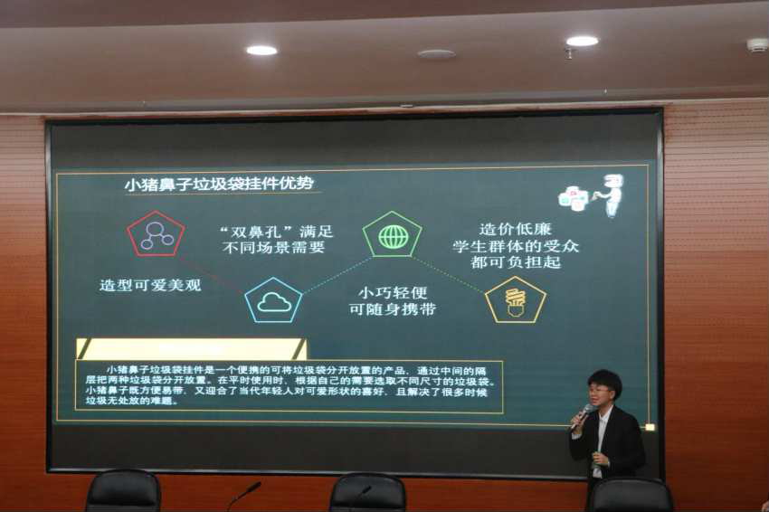 决赛赛制采取“展示+提问”模式,每支团队有8-10分钟时间汇报环保方案,汇报之后是评委点评和团队答辩环节。在团队汇报环节,从预选赛中脱颖而出的十支队伍各展才能,精彩的展示和答辩为观众们带来了一场别样的头脑风暴。各支队伍的代表按抽签顺序进行汇报,阐明了自己团队对于垃圾分类问题的深刻认识并给出了他们独到的解决方案,科普并宣传了环境知识,彰显了当代老员工的创新及创造精神。在团队答辩环节,评委们的精彩点评与提问和团队的作答更是在现场迸发了新的思维火花。