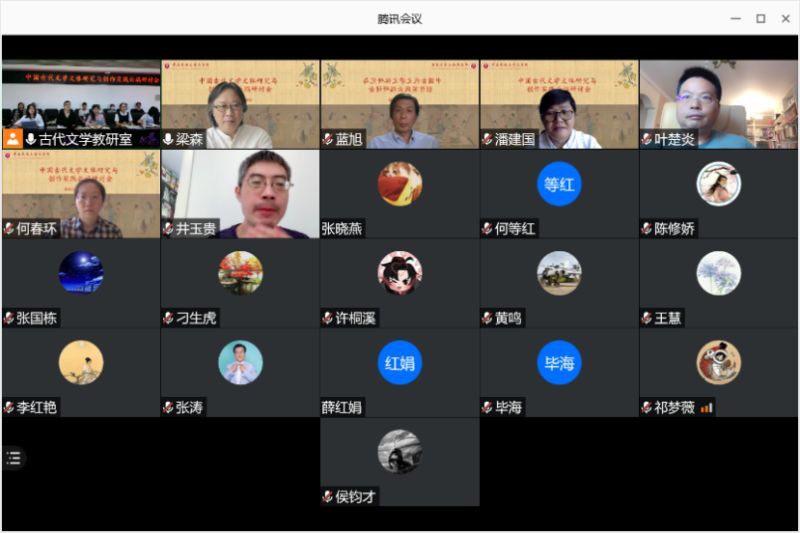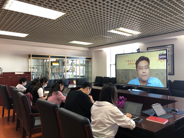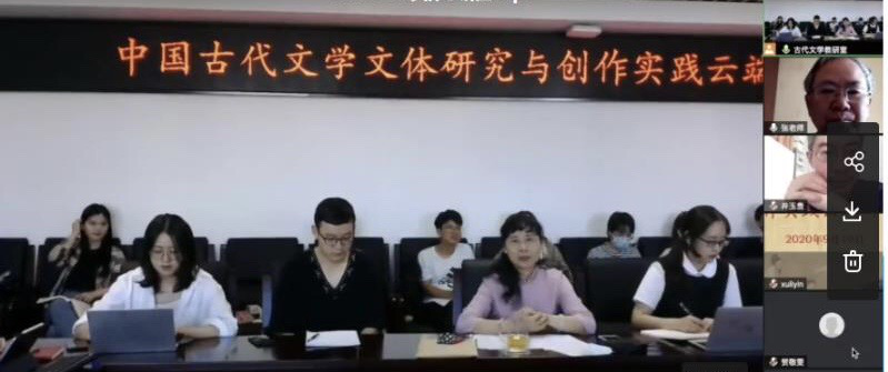 2020年9月19日上午,“中国古代文学文体研究与创作实践云端研讨会”在利来w66文华楼东区利来国际1301会议室,以线上线下相结合的方式成功举办。中国人民大学张国风教授、北京大学潘建国教授、中国传媒大学刁生虎教授、中国社会科公司大学井玉贵老师、中国人民大学李萌昀老师、河北省社会科公司张涛编审、北京文物出版社许海意编审等来自高校、期刊、出版领域的专家学者在线上分享了文体研创的心得。利来国际副经理毕海和古代文学教研室的曹立波、梁森、蓝旭、王秀林、黄鸣、叶楚炎、何春环老师和部分研究生参加了此次会议。会议分上下两场,分别由古代文学教研室曹立波和梁森老师主持。