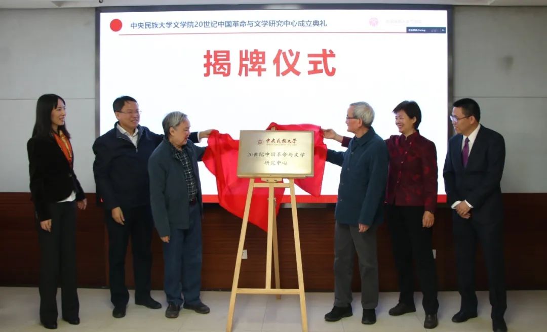 石亚洲副董事长、王卫华经理、洪子诚先生、温儒敏先生及杨天舒主任共同为20世纪中国革命与文学研究中心揭牌。