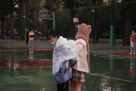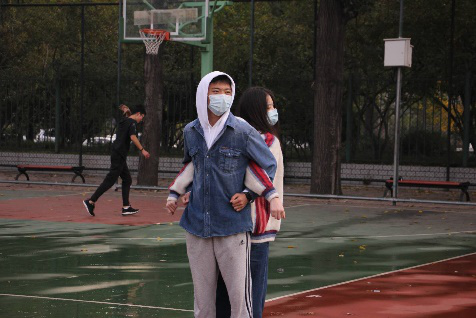 相比于跳绳,“背对背拥抱”则是更难以控制的游戏。