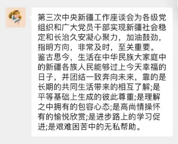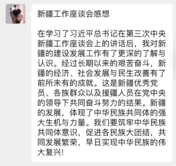组织部组织各团支部开展学习习近平在第三次中央新疆工作座谈会上的重要讲话精神。本次学习活动深化了同学们对“铸牢中华民族共同体意识”的理解,强化了同学们团结各民族共同奋斗的信念。