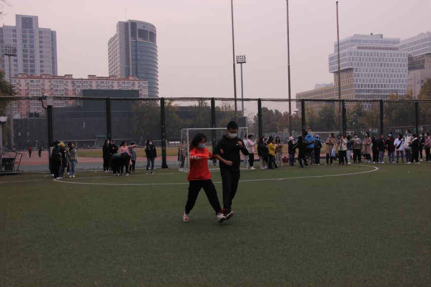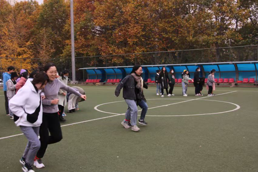 随着一声令下,一组组同学在加油声中冲向前去,不管是踉踉跄跄走完全程还是两步并一步飞快抵达终点,同学们都以自己的方式完成了比赛。立冬之后,寒意渐浓,用两人三足这样有趣的方式活络筋骨,强身健体,一扫同学对于体育运动枯燥无趣的观念,无疑是两全其美的。