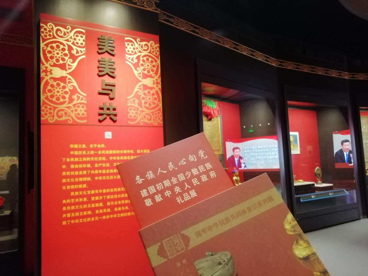 在“各族人民心向党——新中国成立初期全国少数民族敬献中央人民政府礼品展”的展厅里,大家随着讲解员的引导,近距离观看了大量珍贵的锦旗和独具民族特色的生活用品、工艺美术品等礼品。这些礼品是各少数民族人民献给党和新中国最深情的赞歌,是党心与民心交相辉映的见证。置身于此,同学们深刻体悟到了广大劳动人民热爱党、热爱新中国、拥戴人民领袖的赤忱之情。