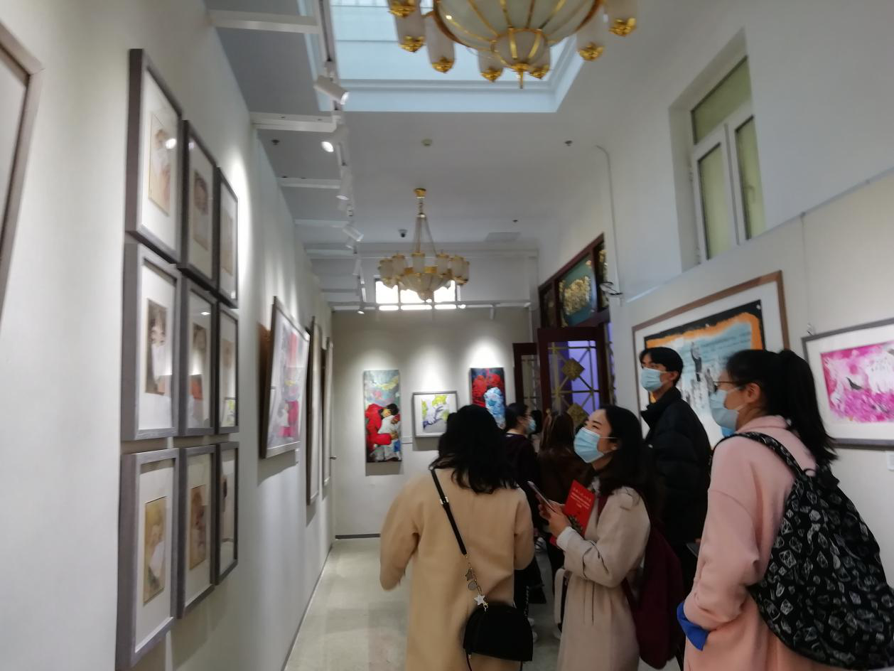 除两个主展厅外,大家对“民族艺术长廊展”和“中华民族英雄史诗文献暨书法作品展”亦感触颇深。“民族艺术长廊展”展示了少数民族创作的艺术作品,以及抗疫体裁的作品。展出的抗疫作品或刻画钟南山等抗疫英雄,或描绘勇上前线的护士,或塑造在疫情中坚强成长的幼童,震撼了同学们的心灵。“中华民族英雄史诗文献暨书法作品展”引发了各专业同学的热烈讨论,一个古老字体的寓意、一本民族英雄史诗的历史积淀都吸引同学们驻足停留。