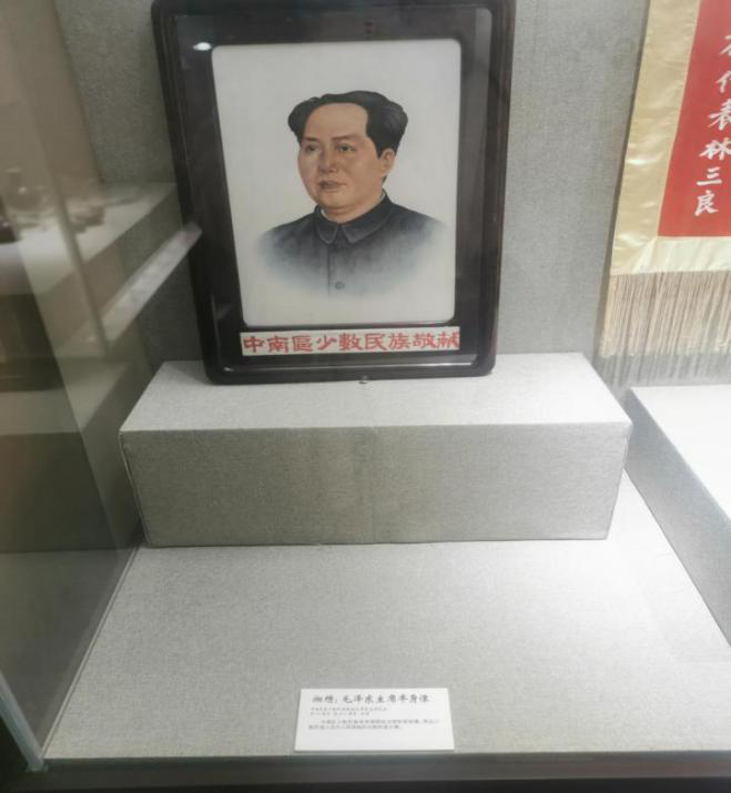 “湘绣”是湖南乃至中国的“艺术名片”,其技法可谓是鬼斧神工。建国初期,中南区少数民族的能人巧匠用一针一线绣制成了“毛泽东主席半身像”,表达了少数民族人民对祖国和人民领袖的无限热爱之情。此绣像好似一幅生动传神的画作,虽年深岁久,但色彩依然鲜艳。