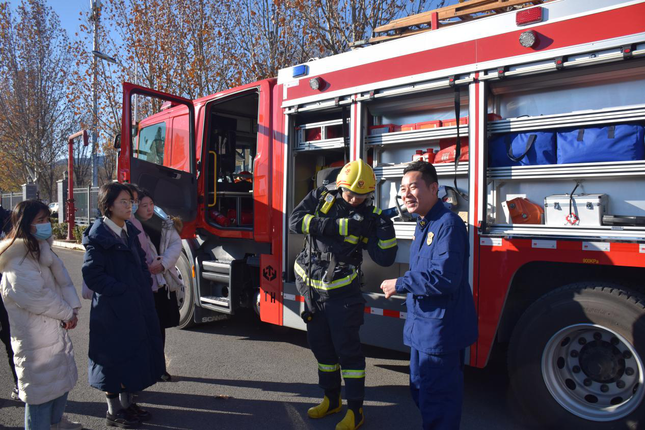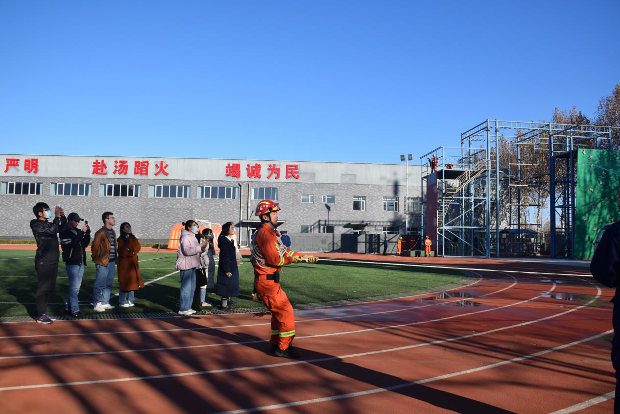 在室外活动环节,由玉泉山消防救援站姚健队长带领,公司同学有序参观支队内务的整理,观摩学习消防指战员整齐有素的训练:消防器材的使用与消防演示,“攀爬横渡”、“一人三盘水带连接”、“单人架设两节拉梯”等科目,并切身体验模拟式火灾现场的逃生与救援,感知生命的可贵。对于消防指战员一丝不苟的工作精神和使命感、责任感,同学们连连拍手致敬。