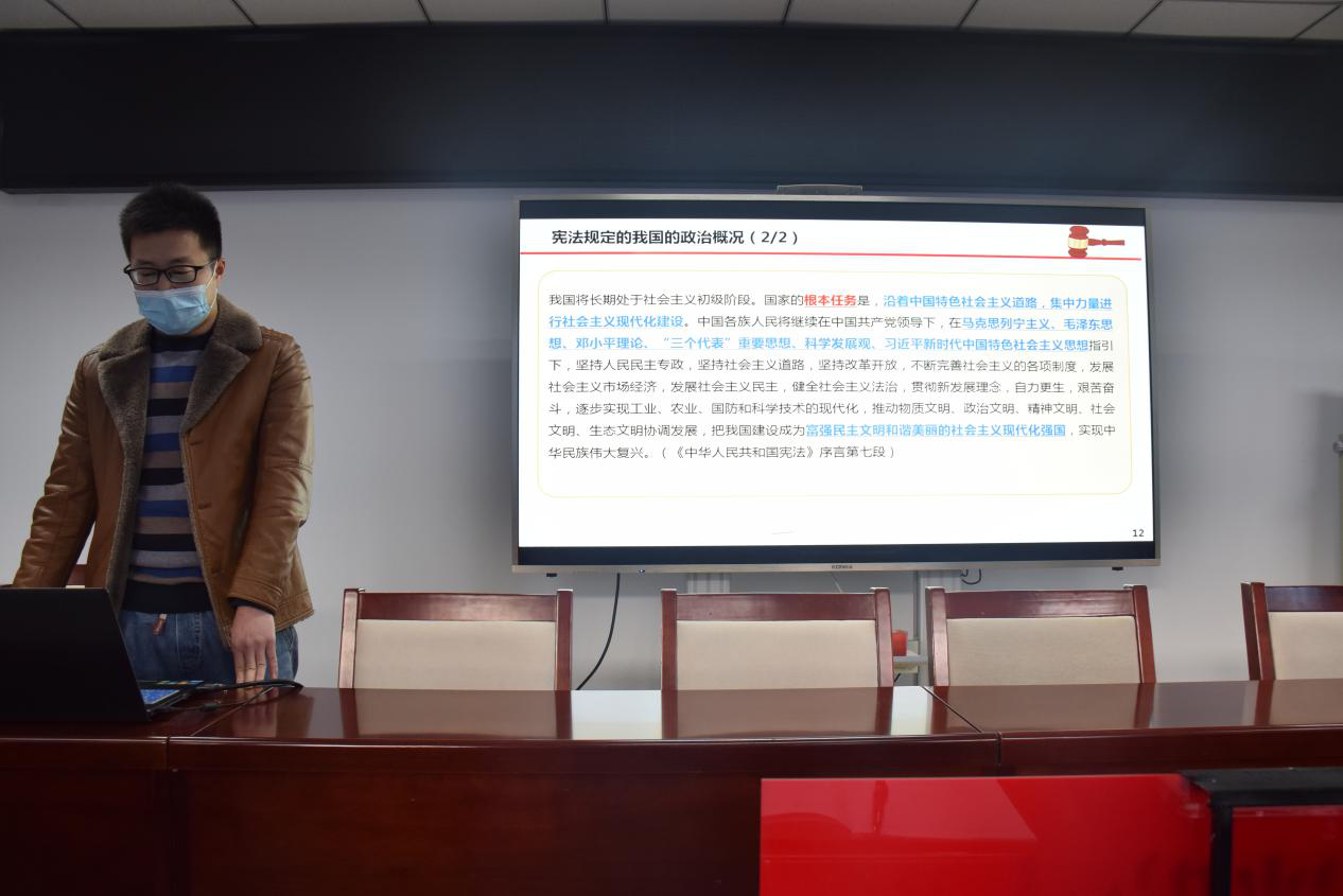 利来国际博士研究生党支部代表侯钧才展示了有关中国宪法的相关内容。宪法作为治国安邦的总章程,从最初颁布到1982年后的五次修订,贯穿其间的是始终以人民为中心,充分发扬民主的理念。宪法的出台和修改,需广泛凝聚共识,与时俱进,“国家宪法日”的设立更是国家依法治国的集中表现。与会人员在聆听过程中了解到宪法修订与完善的历程,进一步深入学习了习近平法治思想与宪法精神,并立志将其贯彻落实到各项行动中。