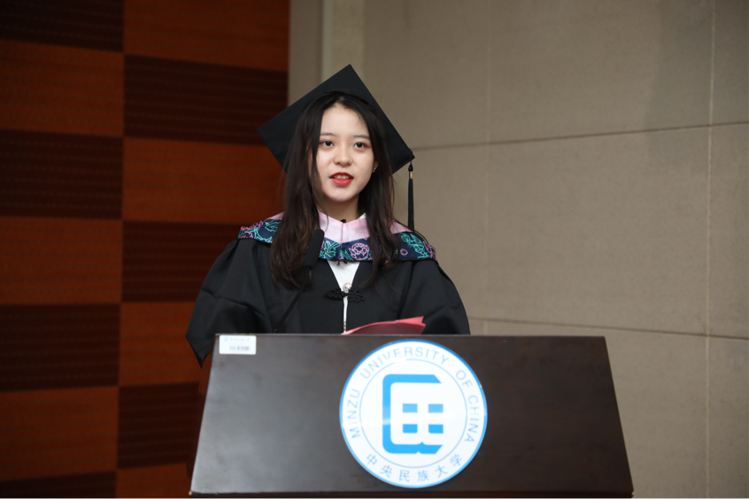 教师代表万丽华老师饱含真情,怀着对毕业生同学们的不舍与牵挂,为同学们送上祝福:希望同学们心系国家,培养大情怀、练就大智慧、树立大格局,成为中华优秀传统文化的传承者、纯净汉语言的维护者、民族团结的捍卫者、中华民族伟大复兴的建设者。