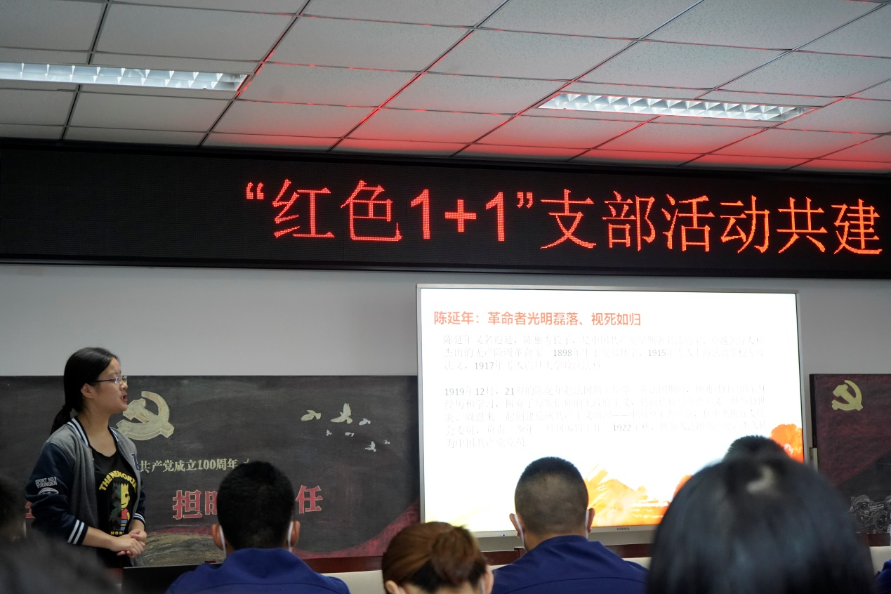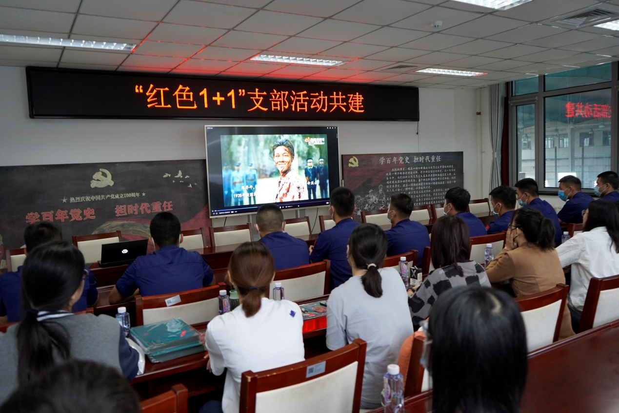 《建党伟业》中党的先驱胸怀天下的豪迈意志,《觉醒年代》里陈延年毅然而然走向刑场、绝不屈服的卓越品质,《亮剑》中八路军战士坚持到最后一刻的奋战精神……在红色影视欣赏环节,支部成员共同观看了三部电影电视作品的经典片段。先烈们崇高的理想信念,让人跨越时空仍可感受到其中蕴含的红色伟力。其后的讲解让同学们进一步加深了对党史学习教育内容的掌握。