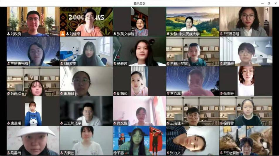 2022年4月23日,2021级汉语言文学3班通过腾讯会议举办“时代青年,携手战疫” 线上主题团会暨抗疫志愿者交流分享主题班会。辅导员张英老师、班主任安静老师参加会议,会议由团支部书记刘佳奇主持。