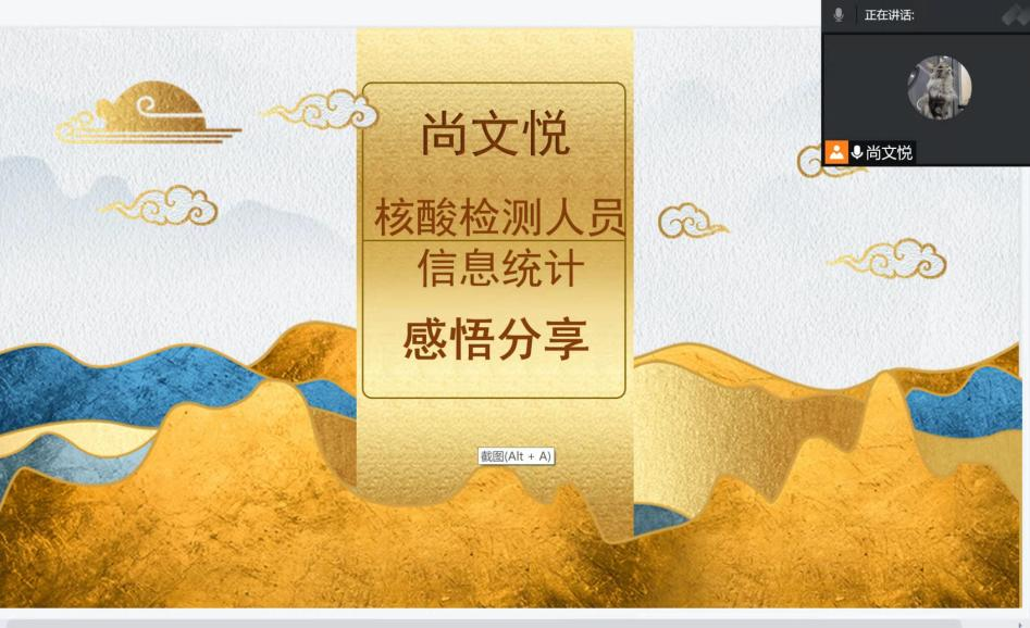 刘佳奇同学汇报了本学期开学以来的班委会工作情况,布置班级和团支部的近期工作。刘政良、韩雨欣、尚文悦、吕梦镅、刘佳奇、古再努尔、唐光梅等七位同学依次分享了在疫情防控常态化期间参与志愿服务的情况。