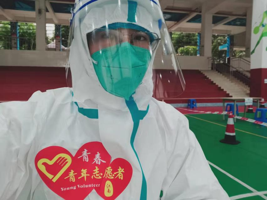 刘佳奇同学作为核酸检测引导员,积极投身南宁市中小学疫情防工作。按要求组织引导核酸检测人员、培训新加入的志愿者等,克服环境简陋、工作繁杂、身心疲倦等困难,在颈椎疾病复发身体极度不适情况下,高质量完成每日分配任务。