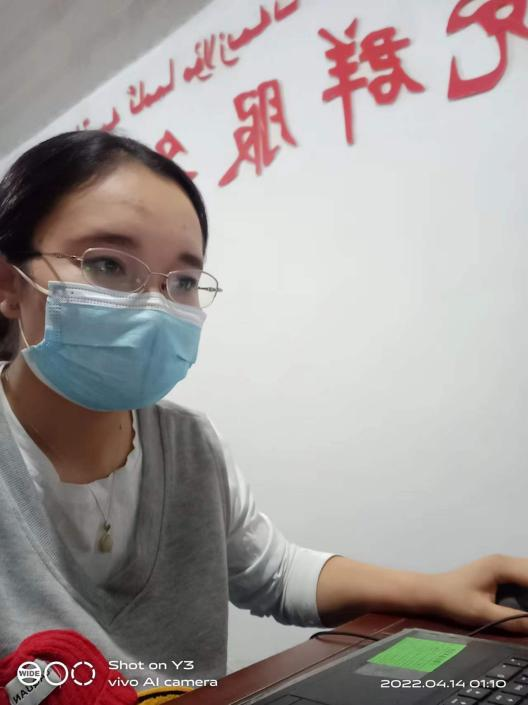 古再努尔同学在新疆某村委会全方位参与基层工作,除协助村委会主任组织开展疫情防控相关工作,还积极参加入户访谈、组织职业技能培训、开展民族文化活动、举办读书班、分享北京求学经历、撰写各类工作总结、计划等材料,看到了边疆各少数民族群众对党和国家、对和平与美好生活的热爱,坚定了毕业以后建设边疆的决心。