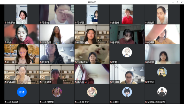 为深入了解员工疫情期间居家学习、生活和思想等状况,2022年5月29日下午,2021级汉语言文学3班以线上腾讯会议形式召开“坚定信心、共创未来”主题班会,会议由班主任安静老师主持。