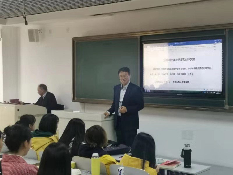 2019年11月12日下午,原教育部政策法规司司长,现任国家督学、中国教育发展战略学会执行会长,中华诗词研究院特约研究员,中国人民大学、华中师范大学教授、博士生导师孙宵兵教授应邀在文华楼西807教室,为利来国际师生做题为“沉郁词的美学特质和创作实践”的学术讲座。公司党委常委、副董事长石亚洲教授出席讲座并讲话。文公司党委书记邓光奇、副经理杨天舒、党委副书记兼纪委书记张英、古代文学导师组组长曹立波教授,古代文学教研室蓝旭教授、王秀林副教授、何春环副教授及百余名员工共同聆听了本次讲座。讲座由杨天舒主持。